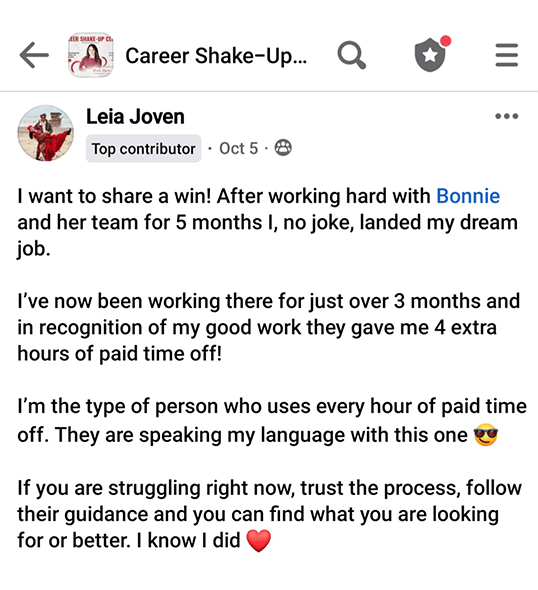 Bonnie is not just about the individual climb; she's dedicated to creating a synergy of success through the Career Shake-Up™ Club. This community is a powerhouse for free training, exclusive insights, and the collective wisdom of ambitious professionals dedicated to making an impact.