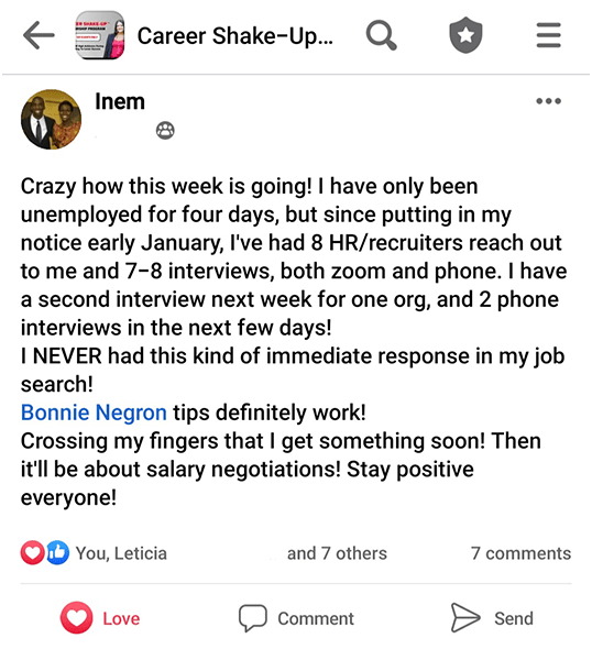 Bonnie Negron is a catalyst for career transformation and a beacon for corporate leaders seeking to ascend their career ladder and boost their income significantly — up to 50% and sometimes more — even if they want to pivot.
